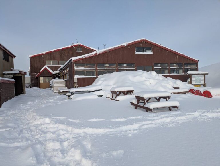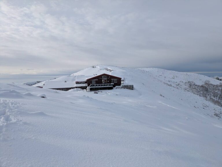 そして、蝶ヶ岳ヒュッテはいよいよ明日から営業開始となります!さあ!この景色を一目!と思った方もいらっしゃるでしょうか?景色がよくなったのとは裏腹に、登山道は歩きにくくなったことをお忘れなく… ゆるんだ雪面が気温低下で固く凍り、その上に新雪…まさに雪崩のリスク、滑落のリスクが増し増しです。標高何メートルから積雪があったかの情報がありませんが、三股ルートは後半に雪渓のトラバースや直登があります。新しい雪は条件によってはアイゼンに団子のように張り付き、アイゼンの刃が新雪の下に眠るアイスバーンに刺さるのを邪魔します。2~3歩に一度ピッケルでアイゼンをはたかなければなりませんので、体力的にも時間的にも負担が増します。